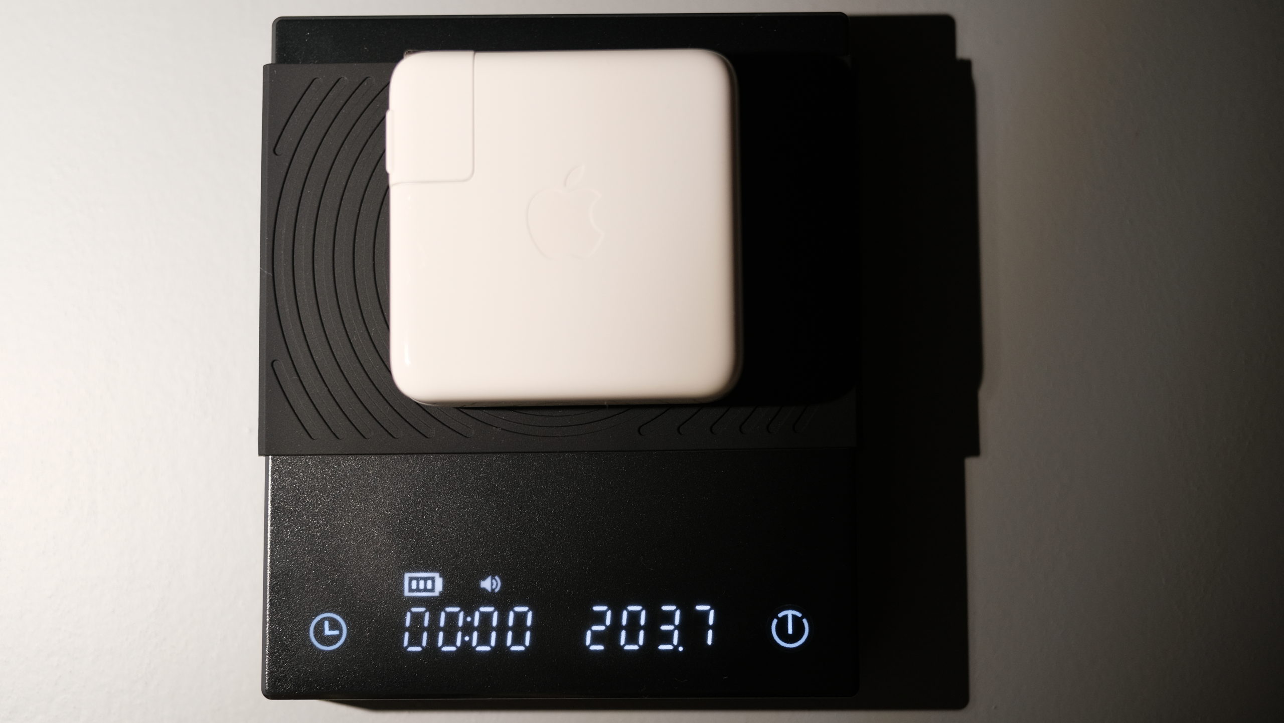 『Apple 61W USB-C電源アダプタ』と比較。Anker Nano II の方が高出力なのに高さがほぼ半分です。幅はちょっぴり大きいですが技術の進歩を感じます。